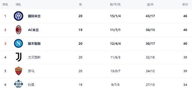 毫无疑问,海外米兰等于夺冠大热点。海外米兰赢下这场比赛之后,总积分达到46分,高居榜首,逾越AC米兰和那不勒斯6分。不外,AC米兰比海外米兰少赛一场。