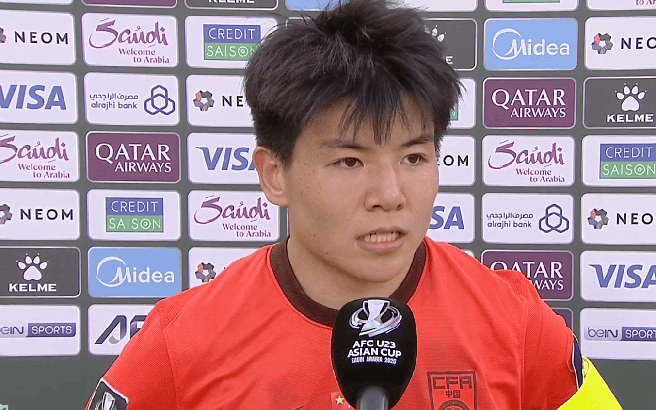 虎扑01月14日讯 U23亚洲杯,中国0-0泰国,中国U23以小组第二晋级淘汰赛,赛后中国U23球员徐彬摄取媒体采访。