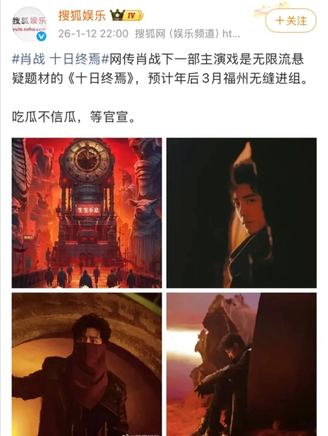 最近,无穷流演义圈和影视圈都被一则外传刷屏了——番茄演义TOP1作品《旬日终焉》要影视化了,并且网传主演锁定肖战,开机时分定在2026年4月。